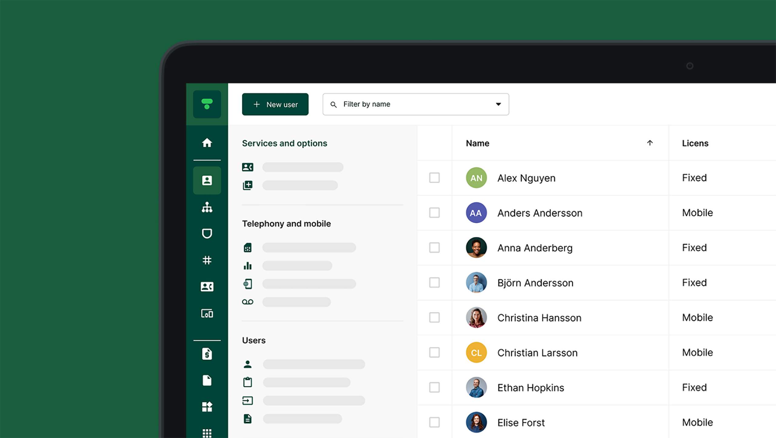 Hallinnoi käyttäjiä, numeroita ja vaihdetoimintoja yhdessä paikassa.